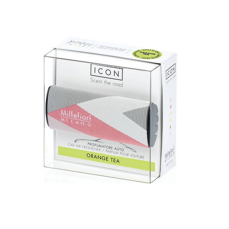 Odświeżacz do samochodu Car Icon Textile Geometric Orange Tea Millefiori Milano. Owocowe nuty cytrusów z domieszką liści herbaty z Madagaskaru.. Nadaj podróży piękny zapach z Millefiori Icon. Stylowy produkt do samochodu, który dostarcza trwały i nieprzerwany zapach.