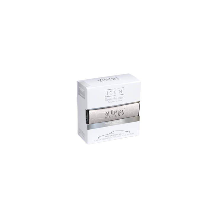 Odświeżacz do samochodu Car Icon Urban Vanilla & Wood Millefiori Milano. Słodki zapach wanilii dopełniony aromatem karmelu i nutami drzewnymi.