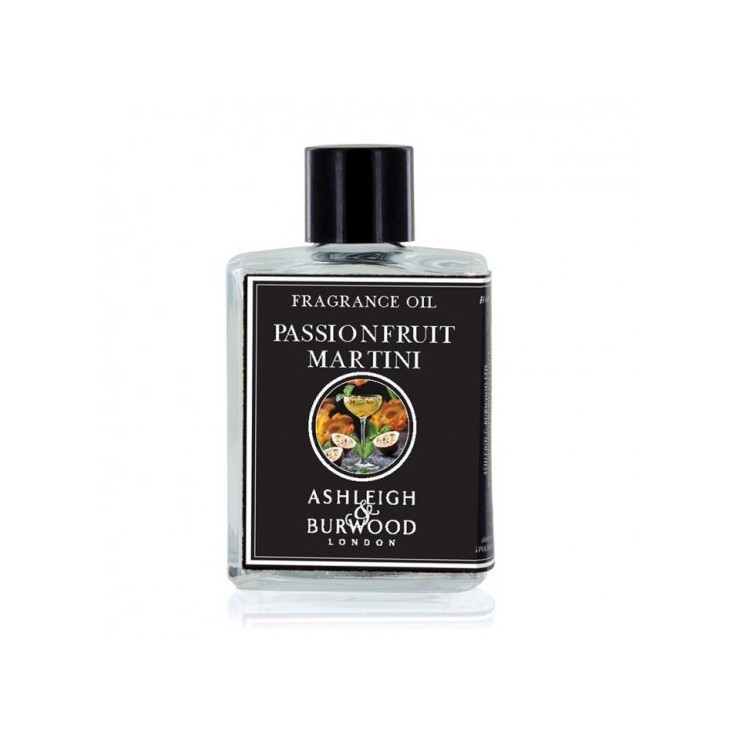 Olejek Zapachowy Passionfruit Martini Ashleigh & Burwood. Świeże nuty egzotycznych cytrusów, soczystej brzoskwini i tropikalnej marakui wykończone słodką wanilią, tworzą zapach orzeźwiającego passionfruit martini