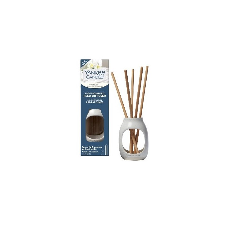 Pałeczki nasączone zapachem zestaw Fluffy Towels Yankee Candle. Lekki, odświeżający zapach, czystych, miękkich ręczników wyjętych prosto z suszarki. Zapach skomponowany z połączenia aromatu cytryny, jabłka, lawendy i lilii.