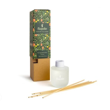 Odświeżacz powietrza w formie pachnących patyczków, który równomiernie rozprowadza zapach starannie dobranej kompozycji perfumeryjnej w przestrzeni domu lub mieszkania. Matowe szkło z logo Flagolie stanowi wyjątkową ozdobę, przyciąga wzrok i doskonale komponuje się z innymi dodatkami. Dzięki temu, że pojemnik jest przeźroczysty, można z łatwością kontrolować tempo, w jakim perfumy ulatniają się do powietrza. Ponadto klasyczny i elegancki design dyfuzora sprawia, że jest ozdobą pomieszczenia, w którym się znajduje.