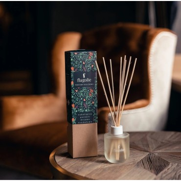 Odświeżacz powietrza w formie pachnących patyczków, który równomiernie rozprowadza zapach starannie dobranej kompozycji perfumeryjnej w przestrzeni domu lub mieszkania. Matowe szkło z logo Flagolie stanowi wyjątkową ozdobę, przyciąga wzrok i doskonale komponuje się z innymi dodatkami. Dzięki temu, że pojemnik jest przeźroczysty, można z łatwością kontrolować tempo, w jakim perfumy ulatniają się do powietrza. Ponadto klasyczny i elegancki design dyfuzora sprawia, że jest ozdobą pomieszczenia, w którym się znajduje.