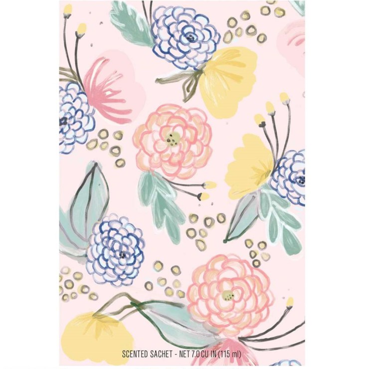 Saszetka zapachowa Blush Floral Sweet Grace Bridgewater. Iluminacja daru życia i piękna pasji promieniujących owoców zanurzonych w orzeźwiającej herbacie oraz klasycznej patchouli. Saszetka ma wiele nie wymagających zastosowań. Sprawdzi się w garderobie, aby odzież i pościel pięknie pachniała, do stosowania w torebce, samochodzie i wszędzie tam, gdzie wskazany jest piękny zapach.