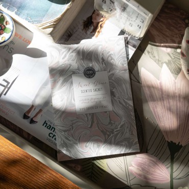 Saszetka zapachowa Marble Sweet Grace Bridgewater. Iluminacja daru życia i piękna pasji promieniujących owoców zanurzonych w orzeźwiającej herbacie oraz klasycznej patchouli. Saszetka ma wiele nie wymagających zastosowań. Sprawdzi się w garderobie, aby odzież i pościel pięknie pachniała, do stosowania w torebce, samochodzie i wszędzie tam, gdzie wskazany jest piękny zapach.