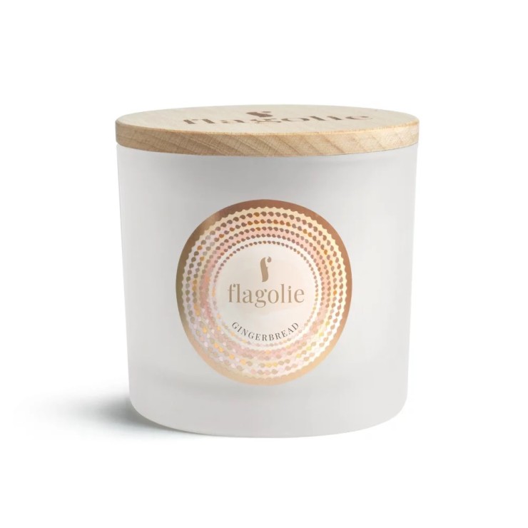 Sojowa świeca zapachowa Gingerbread-pierniczki Flagolie. Świeca zapachowa do wnętrz o zapachu pierniczków, wykonana ręcznie z naturalnego wosku sojowego. Zapach świecy to słodka woń, z wyczuwalną korzenną nutą. Wylana w białym, matowym słoiku z podwójnego szkła, zapakowana w ozdobny karton z tektury ekologicznej.