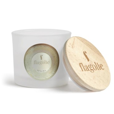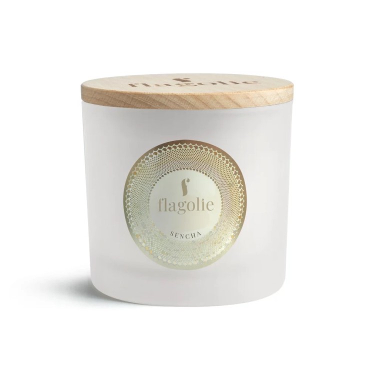 Sojowa świeca zapachowa Sencha - zielona herbata, limonka, bergamotka, piżmo Flagolie. Świeca zapachowa do wnętrz o zapachu zielonej herbaty, wykonana ręcznie z naturalnego wosku sojowego. Charakteryzuje ją świeży, delikatny, orzeźwiający, lekko cytrusowy zapach. Wylana w białym, matowym słoiku z podwójnego szkła, zapakowana w ozdobny karton z tektury ekologicznej.