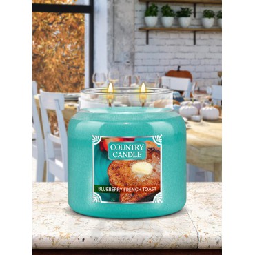 Średnia świeca Blueberry French Toast Country Candle. Super, soczyste borówki w połączeniu z porzeczką i cytronem, brązowym cukrem, granolą, wanilią oraz migdałami. To przepis na smaczne i słodkie Blueberry French Toast - idealne śniadanie.