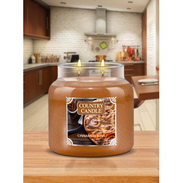 Średnia świeca Cinnamon Buns Country Candle. Cynamonowe bułeczki to idealny, słodki przysmak na śniadanie lub na popołudniową przekąskę. Ciasteczkowe Cinnamon Buns to przytulny zapach cynamonu i gałki muszkatołowej z dodatkiem śmietanki, mascarpone, miodu, orzechów włoskich i wanilii.