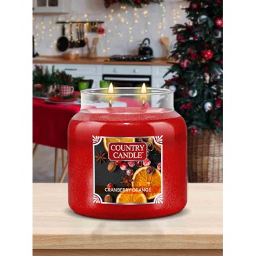 Średnia świeca Cranberry Orange Country Candle. Zapach Cranberry Orange marki Country Candle to owocowo-słodki zapach. Zapach świeżej, kwaśnej żurawiny i mandarynek doskonale uzupełniają nuty skórki cytryny. Niuanse klementynek, truskawek i granatu nadają świecy zapachowej Cranberry Orange jej głębię. Wanilia, neroli i piżmo zapewnia przytulne ciepło.