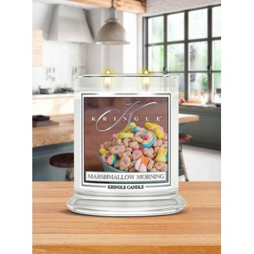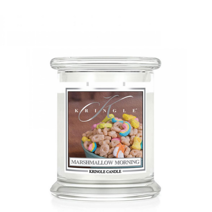 Średnia świeca Marshmallow Morning Kringle Candle. Marshmallow Morning to zapach nostalgii, który przypomni Ci na nowo, wczesne godziny poranne i smaczne śniadania. Słodkie płatki zbożowe z mlekiem, szczyptą cynamonu, wanilii i odrobiną pianek marshmallow sprawią, że z sentymentem wspomnisz beztroski czas dzieciństwa.