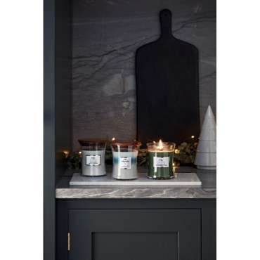 Die Kerzen sind in einem eleganten Glasbehälter untergebracht, während der Holzdeckel einen Hauch von Lässigkeit verleiht und auf den umweltfreundlichen Charakter des Produkts hinweist. Die Kerzen von Woodwick sind die perfekte Ergänzung für jede Inneneinrichtung.