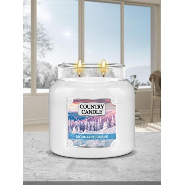 Średnia świeca Mountain Sunrise Country Candle. Magiczny, lekko tajemniczy niczym drzwi do pięknego zaczarowanego zimowego ogrodu zapach sosny, rosy na kwiatach i pełnego blasku śniegu o wschodzie słońca. Poczuj tą niesamowitą zimową magię i otul się pięknym świeżym zapachem.