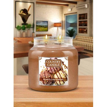 Średnia świeca Neapolitan Sundae Country Candle. Nasz neapolitański deser lodowy to popularne połączenie lodów (czekoladowych, waniliowych i truskawkowych), które sprawdzi się równie dobrze jako zapach. Smakowite warstwy "naszego" deseru słodka, czekoladowa krówka, aksamitna wanilia i świeża gałka lodów truskawkowych tworzą niepowtarzalny zapach. Składniki wspaniale harmonizują ze sobą i uzupełniają się nawzajem, tworząc niebiańsko-słodkie uwodzenie! Dodaj jeszcze bitą śmietanę i delektuj się każdą łyżką!