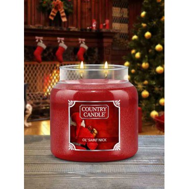 Średnia świeca Ol' Saint Nick Country Candle. Ol' Saint Nick - to przyjemny zapach na święta Bożego Narodzenia i na całą zimę. Czerwony cedr i delikatne aromaty wanilii i piżma tworzą wyjątkowe doznania zapachowe, które uzupełniają delikatne nuty ciemnego drzewa sandałowego.