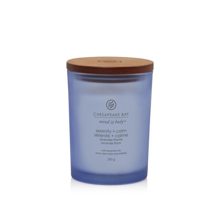 Średnia świeca Serenity & Calm (Lavender Thyme) Chesapeake Bay Candle. Stwórz pogodną i spokojną atmosferę dzięki kojącym aromatom bergamotki, rozmarynu i lawendy w połączeniu z kwiatem pomarańczy, tymiankiem i paczulą.