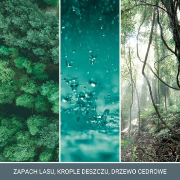 Wybierz się na spacer leśną ścieżką w deszczu, gdzie w powietrzu unoszą się orzeźwiające nuty grejpfruta, kwiatów mandarynki i ciepłego bursztynu.