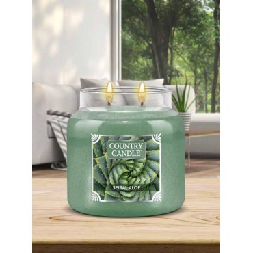 Średnia świeca Spiral Aloe Country Candle. Zapach Spiral Aloe już niedługo stanie się Twoim ulubieńcem. Połączenie zielonych, zroszonych liści, kwiatów wodnych, piżma i bursztynu zapewni finezyjną świeżość i ciepło. Lekko drzewną nutę bazy wspaniale uzupełniają kwiatowe akcenty róż i białych kwiatów, tworząc wielowymiarowe doznania zapachowe. Świeże, cytrynowe niuanse doskonale dopełniają ten wyjątkowy zapach.