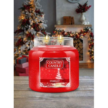 Średnia świeca Stardust Country Candle. Gwiezdny pył jest niebiańską konstelacją odważnych kwiatów, ciepłego bursztynu i piżmowego lasu.