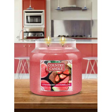 Średnia świeca Strawberry Watermelon Country Candle. Soczyste truskawki zestawione z brzoskwiniami i arbuzem łączą się z mango i owocem kantalupa. Woda ogórkowa nasycona tą mieszanką owoców ukryta została w naszej świecy Strawberry Watermelon i oferuje nam wyjątkowy, jasny i energetyzujący zapach.