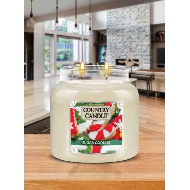 Średnia świeca Sugar Cookies Country Candle. Wielowymiarowy zapach świeżo upieczonych ciasteczek,którym można rozkoszować się bez końca. W pierwszej chwili poczujesz mocne kremowe karmelowe wnętrze, później uwydatni się zapach delikatnej laski cynamonu i syropu klonowego, abyś na koniec mógł rozkoszować się aromatem wanilii i bobu tonka, wzmocnionego nutą eleganckiego białego piżma.