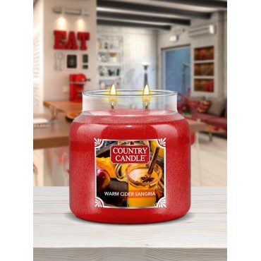 Średnia świeca Warm Cider Sangria Country Candle. Świętuj wraz z nami ! Świąteczna mieszanka pysznych, słodkich jabłek podgrzanych wraz z wyrazistym cynamonem, imbirem, oraz słodzoną gałką muszkatołową. Waniliowy bourbon wraz z dodatkiem aromatycznych goździków został zwieńczony musującym szampanem. Ciepły cydr Sangria z pewnością przyniesie radość w te chłodnych jesienne dni.