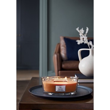 Die Kerzen sind in einem eleganten Glasbehälter untergebracht, während der Holzdeckel einen Hauch von Lässigkeit verleiht und auf den umweltfreundlichen Charakter des Produkts hinweist. Die Kerzen von Woodwick sind die perfekte Ergänzung für jede Inneneinrichtung.