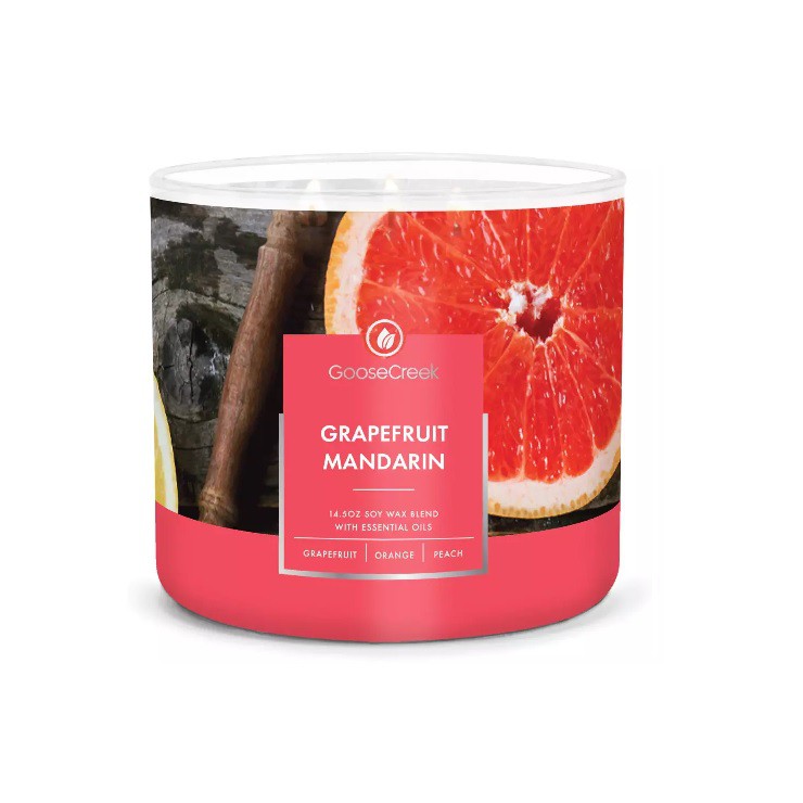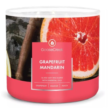 Świeca Tumbler Grapefruit Mandarin Goose Creek Candle. Soczysta mieszanka letnich owoców. Tarta grejpfrutowa i soczysta mandarynka idealnie nadają się na wieczorny piknik.