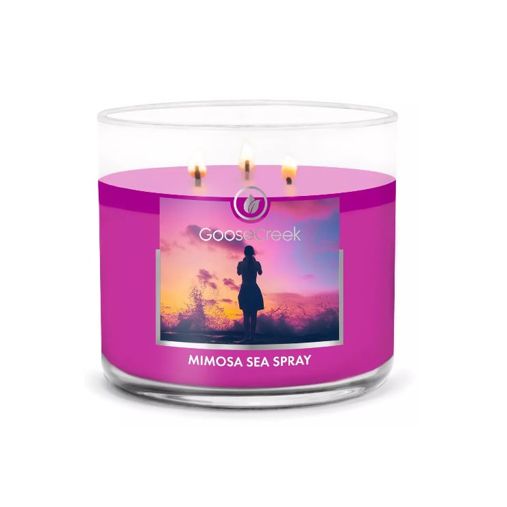 Świeca Tumbler Mimosa Sea Spray Goose Creek Candle. Dramatyczne fale rozbijają się, gdy chłodna mimoza wyspy uspokaja twój umysł.