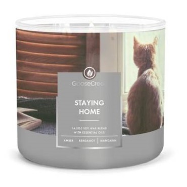 Świeca Tumbler Staying Home Goose Creek Candle. Napawaj się ciepłem domowego ogniska i zadbaj o odprężenie w towarzystwie ciepłego i przytulnego aromatu bursztynu, wanilii, nut drzewnych oraz świeżych nut bergamotki i mandarynki