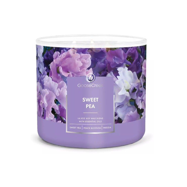Świeca Tumbler Sweet Pea Goose Creek Candle. Niebiańskie ogrody czekają. Delikatne kwiaty unoszą się w delikatnej wiosennej bryzie.