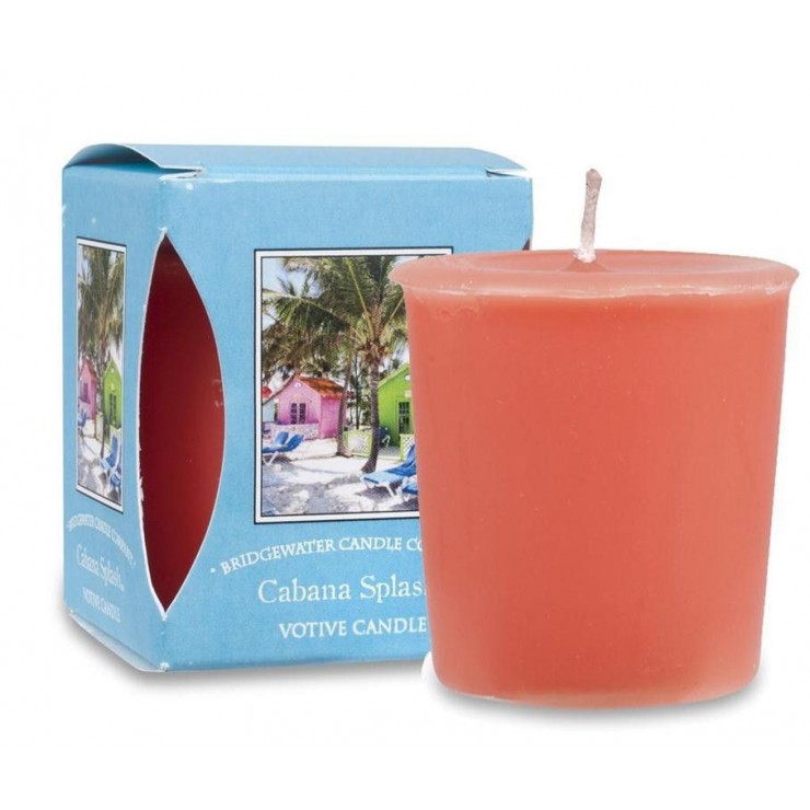 Świeca zapachowa Votive Cabana Splash 56 g Bridgewater Candle. Zanurz się w bryzie pikantnych aromatów, owoców tropikalnych tworzących słodki, pachnący raj. Świece typu Votive można stosować tylko w przeznaczonych do tego szklanych świecznikach.