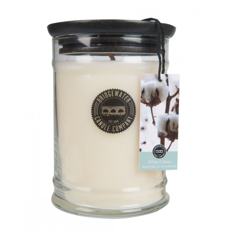 Świeca zapachowa White Cotton 524g Bridgewater Candle. Taniec o zachodzie słońca wypełniony zapachem bawełnianych prześcieradeł. Świeczka zapachowa White Cotton wykonana jest z wysoko wyselekcjonowanego oleju sojowego, dzięki czemu równomiernie i czysto się wypala.