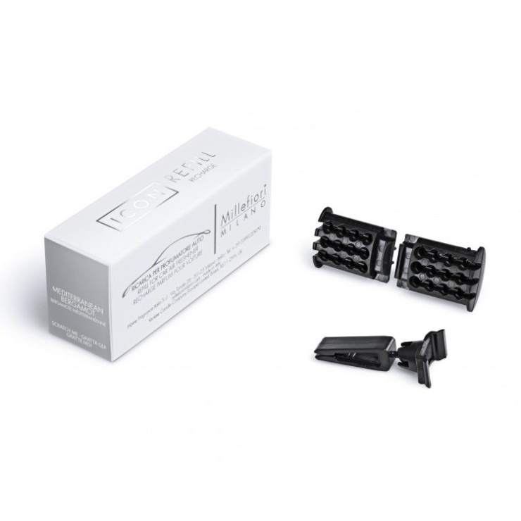 Uzupełniacz do odświeżacza Car Icon Mediterranean Bergamot Millefiori Milano. Śródziemnomorska Bergamotka przełamana nutką cytryny i różowego grejpfruta. Nadaj podróży piękny zapach z Millefiori Icon. Stylowy produkt do samochodu, który dostarcza trwały i nieprzerwany zapach.
