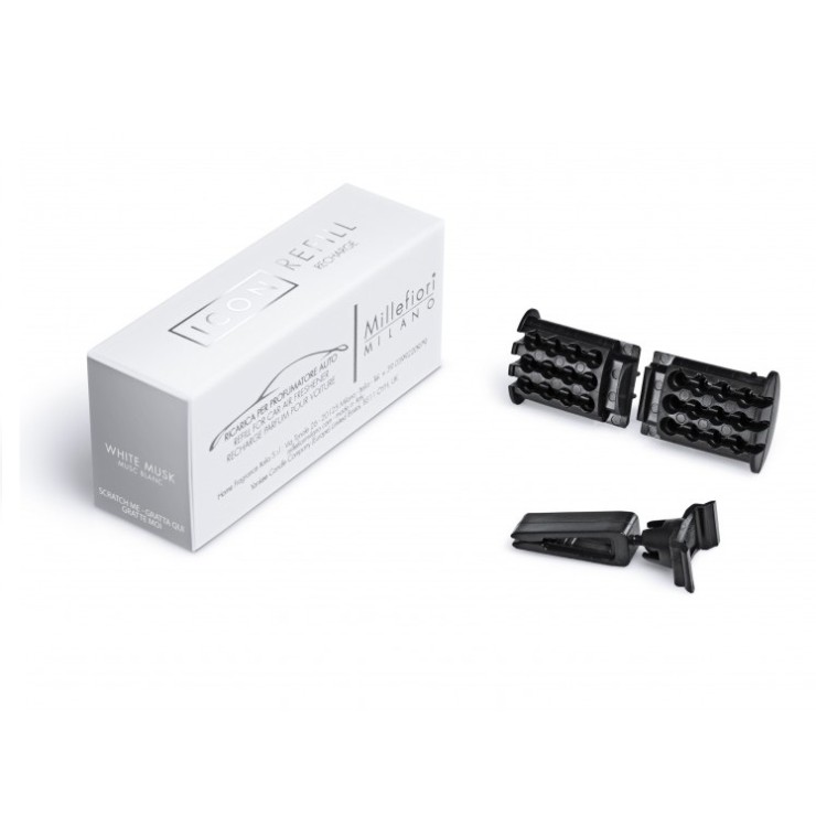 Uzupełniacz do odświeżacza Car Icon White Musk Millefiori Milano. Pudrowe nuty białych kwiatów połączone z aromatem świeżych ziarenek wanilii. Nadaj podróży piękny zapach z Millefiori Icon. Stylowy produkt do samochodu, który dostarcza trwały i nieprzerwany zapach.
