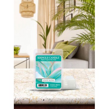 Wosk zapachowy Agave Pastel Kringle Candle. Świeże, pikantne cytrusy i aromatyczne połączenie czerwonych owoców, dzikich przypraw i zieleni. Kwiatowe aromaty doskonale łączą się z delikatną, słoną wodą.