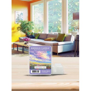 Wosk zapachowy Beautiful Day Kringle Candle. Obudź się w cieple złotego bursztynu, gdy promienie słońca muskają Twoją skórę. Naładuj baterie nutą dojrzałej i energetyzującej guawy oraz skórki z cytryny. Z radością i energią rozpocznij poranek. Ten zapach to gwarancja pięknego dnia!
