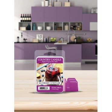 Wosk zapachowy Blueberry Lemonade Country Candle. Idealny zapach na upalne, letnie dni. Zaczynamy od borówek zmieszanych z malinami i cytrynami; następnie dodaj jabłko i limonkę oraz odrobinę imbiru, wanilii i słodzonego piżma, aby uzyskać cierpką i orzeźwiającą Lemoniadę Jagodową!