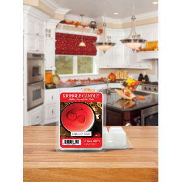 Wosk zapachowy Cherry Chai Kringle Candle. Soczyste sezonowe wiśnie i przepyszne czerwone jagody łączą się z ciepłymi przyprawami chai, wanilią, goździkami i kardamonem, aby uzyskać pyszny akcent tradycyjnego zapachu chai.