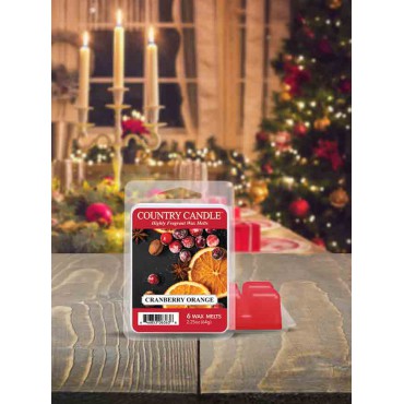 Wosk zapachowy Cranberry Orange Country Candle. Zapach Cranberry Orange marki Country Candle to owocowo-słodki zapach. Zapach świeżej, kwaśnej żurawiny i mandarynek doskonale uzupełniają nuty skórki cytryny. Niuanse klementynek, truskawek i granatu nadają świecy zapachowej Cranberry Orange jej głębię. Wanilia, neroli i piżmo zapewnia przytulne ciepło.