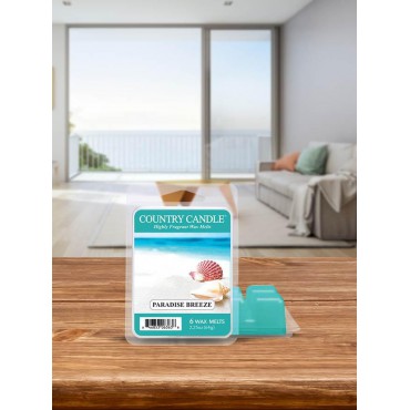 Wosk zapachowy Paradise Breeze Country Candle. Wyobraź sobie tropikalny wypoczynek z bujnymi zielonymi liśćmi palm, świeżym bananem i wodą kokosową. Paradise Breeze dostarcza kwitnących kwiatów połączonych z bogatą fasolą tonka i słodkim cukrem waniliowym w tym wyjątkowym zapachu, inspirowanym morzem.