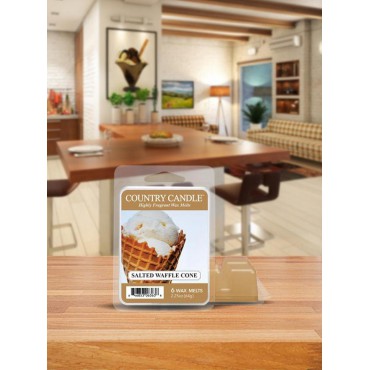 Wosk zapachowy Salted Waffle Cone Country Candle. Co jest najlepsze do udekorowania złotego maślanego rożka waflowego? Tęczowa posypka z dodatkiem karmelowego sosu z solą morską i obfitą gałką lodów waniliowych!