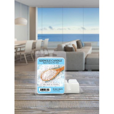 Wosk zapachowy Sea Salt & Tonka Kringle Candle. Ucieknij na molo i poczuj delikatną morską bryzę, słone powietrze i unoszące się nuty cytrusów, bobu tonka, lawendy i jaśminu. Sea Salt & Tonka to mocny morski zapach z kojącym bursztynem, cedrem i piżmem.
