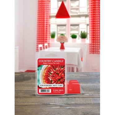 Wosk zapachowy Strawberry Mint Tart Country Candle. Strawberry Mint Tart to kusząca tarta wypełniona świeżymi truskawkami, cytrusami i aksamitnie kremowym zapachem wanilii. Podczas gdy nuty owocowych truskawek zapewniają słodycz, delikatne niuanse cytryny doskonale orzeźwiają ten pyszny zapach. Bogaty aromat chrupiącej i puszystej skórki oraz słodkiej śmietanki zdecydowanie sprawia, że chcesz więcej. Nie musisz się obawiać, po naszą smakowitą tarte możesz sięgać bez najmniejszych wyrzutów sumienia.