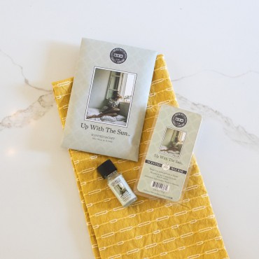 Up With The Sun to orzeźwiający, poprawiający nastrój zapach, który łączy podnoszące na duchu nuty cytryny, pieprzu i geranium z niezaprzeczalnym, piżmowym ciepłem drzewa sandałowego, cedru i bursztynu.