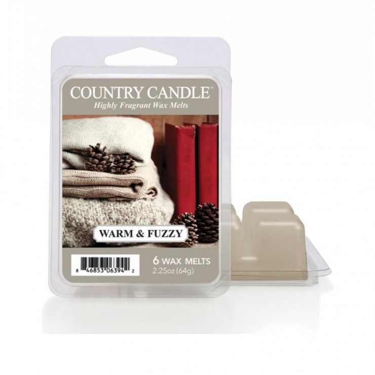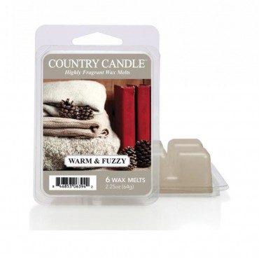Wosk zapachowy Warm and Fuzzy Country Candle. Ciepły, pudrowy akord łączy się z drzewem cedrowym oraz nutą fiołków i róży, zapewniając kojący, przytulny zapach.